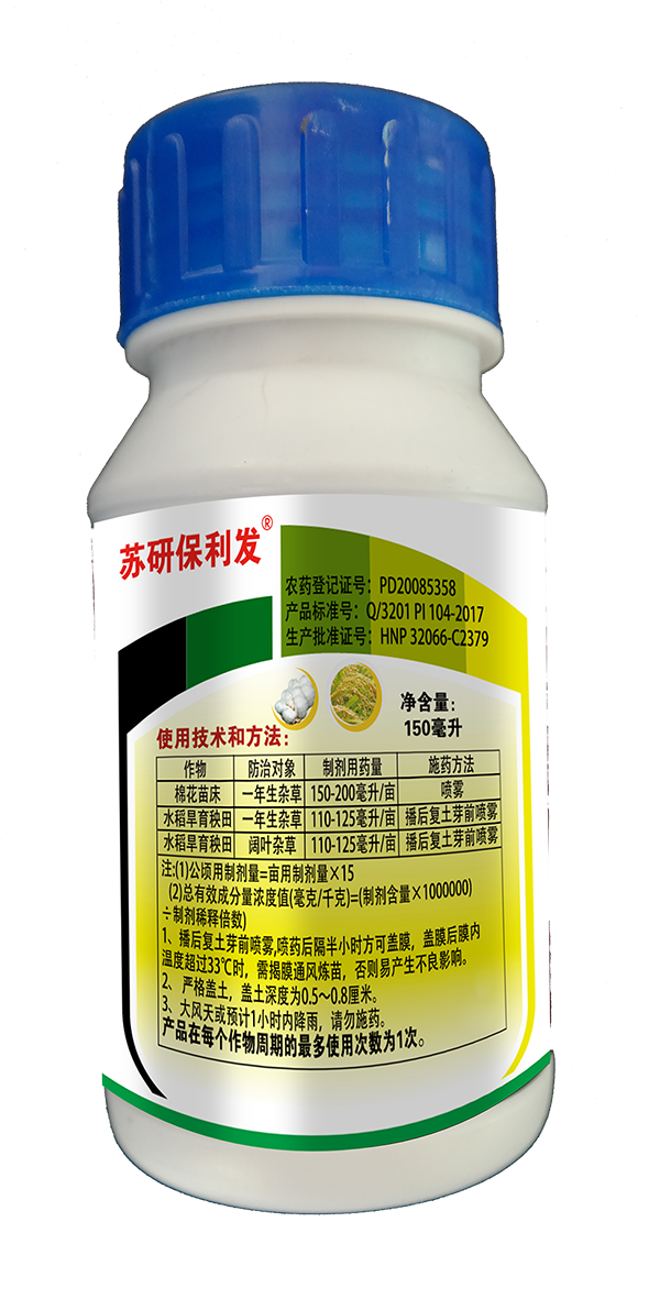 蘇研保利發(fā) 40%噁草酮丁草胺乳油